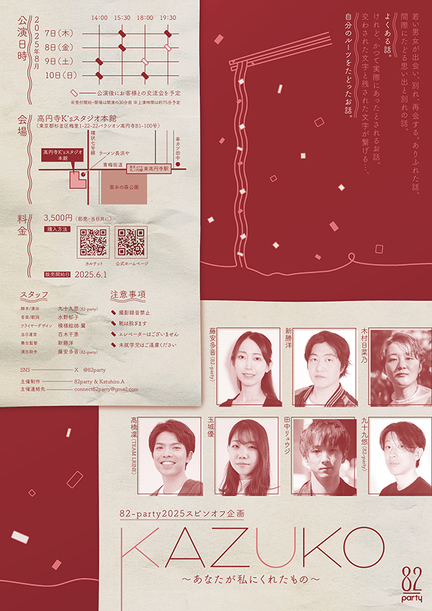 2025年8月と同年12月演目の関連作品であるため、フライヤーにも繋がりをとお願いしました。フライヤーを見てすぐにわかるように、そして演目を観てさらに深くわかるようになっています。
