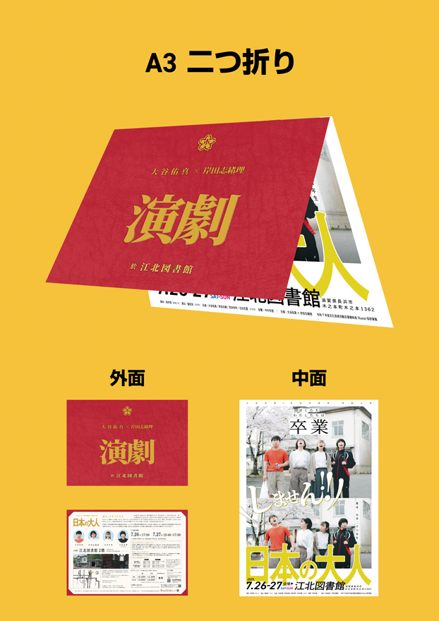 また、A3二つ折り仕様のため、「演劇」の文字だけで、A4の半分以上を占めており、視認性もかなり高いです。